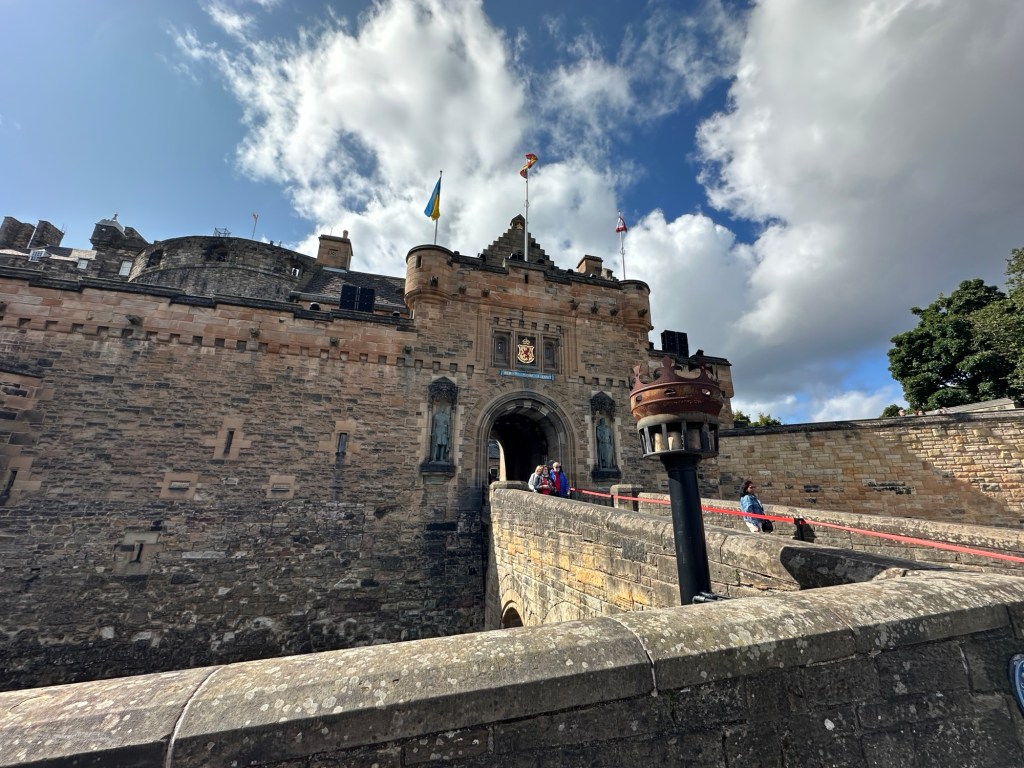 Now, Edinburgh isn’t just known for its artsy vibe… obviously. Our guide explained, that as the Scottish capital since the 15th century, it’s divided into two distinct areas: the Old Town, dominated by a medieval fortress ( how cool is that?) and the neoclassical New Town, whose 18th-century development left a lasting mark on European urban planning. Speaking of fortresses, Edinburgh Castle sits majestically on Castle Rock (Think Game of Thrones vibes… we kept asking where they keep the dragons), a 700-million-year-old extinct volcano. This isn’t just any castle—it’s one of the oldest fortified places in Europe with a long, rich history as a royal residence, military garrison, prison, and fortress. We actually walked through the old prison cells and it was extremely creepy yet so cool at the same time. And every day (except Sundays), the ‘One O’Clock Gun’ fire from the castle erupts. We got to experience this as we were there during that time.