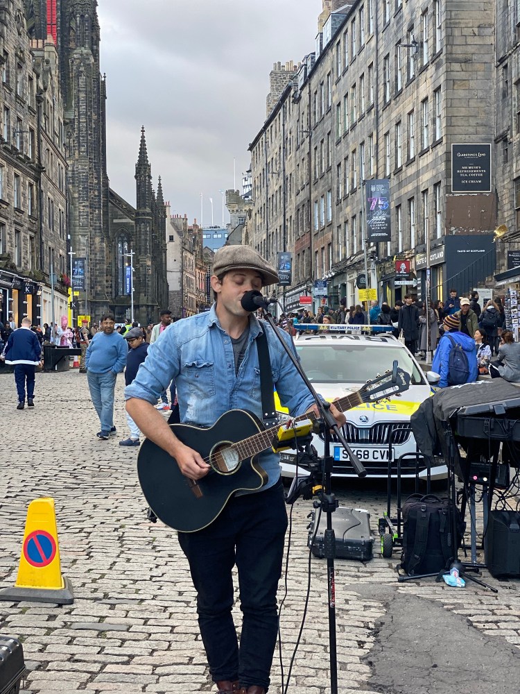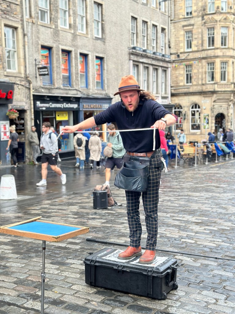 A bit of context: 18 years ago, I packed my first backpack and headed out on a year-long journey around the globe. My first stop? The UK. Scotland. Unbeknownst to me, I landed in Edinburgh during the world’s largest arts festival, The Fringe Festival. I had no idea what the Fringe Festival was and absolutely no idea what a spectacular event it would be. Those three days in Edinburgh were pure magic. It was 18 years ago, but it still seems like yesterday. The people, the music, the art, the culture—all of it. I’ve always yearned to go back and experience that superb festival again, so when Honey and I planned our Portugal trip in August, it only seemed natural to me—since the Fringe Festival takes place in August—to take her to this unique, magical, wondrous carnival of creativity in Edinburgh. I knew she would be blown away, and I was itching to get back. So, for us, it just made sense. And holy shit…what a phenomenal choice it was! Edinburgh and the Fringe did not disappoint!