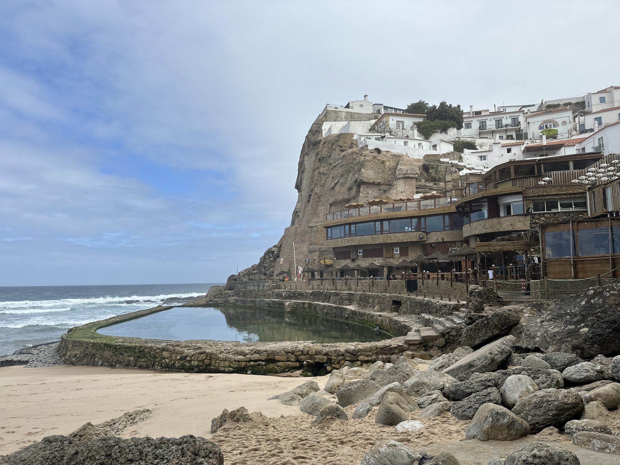 Every trip to Lisbon should come with at least one epic day trip, and we decided to check out the sleepy yet oddly trendy fishing town of Azenhas do Mar. It’s a hidden gem that’s equal parts chill and hip with that sexy cool vibe you didn’t even know you were looking for. With its dramatic cliffs, ocean views, and natural pools, this place oozes “Insta”-ready. Our local friends deemed this as a “must-see” and now we know why. I can only imagine this place going off with the Djs while sipping on delicious “Sexy Pineapples”. Oh, this place is a vibe, babe.