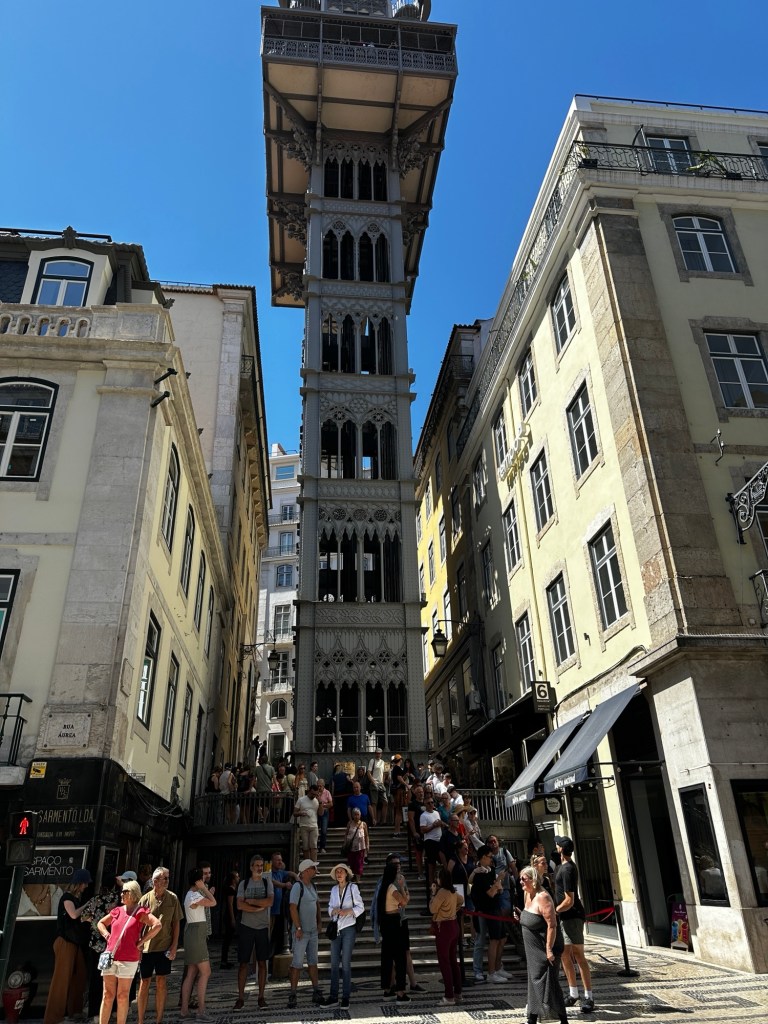 One of our more “elevated” moments in Lisbon (see what I did there, I’m so damn punny) was riding up to the top of the iconic Santa Justa Elevator. It’s one of those must-do experiences, and honestly, it was pretty epic. The views from the top are absolutely breathtaking. You can see the whole city sprawled out beneath you, with red rooftops and endless sights to explore. Afterward, we spent hours wandering in and out of shops, admiring the local artists and their unique creations, buying more souvenirs than we care to admit. Loved ones at home? Spoiled. Us? Even more spoiled with some cool artwork for ourselves. Lisbon’s vibe is just fun. It’s energetic, it’s buzzing, and it’s full of surprises.