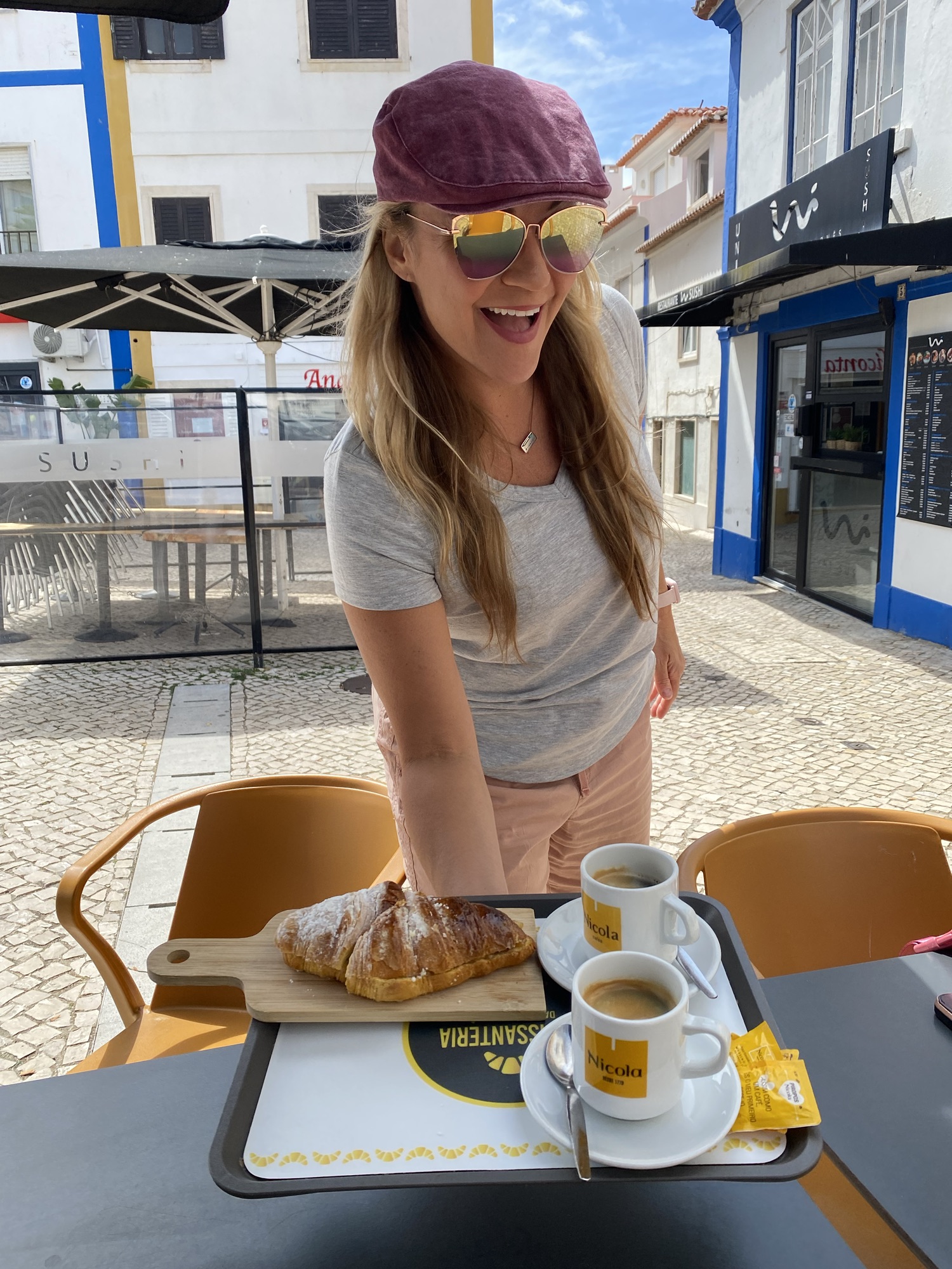 Long story short, you won’t find an “after” picture of me holding the tray because my wife was too busy literally crying of laughter while I nearly lost my breakfast. I’m sure the locals got a good chuckle out of my food-induced trauma, and I washed it down with an apple croissant—because croissants are always a safe bet. So here is a picture of me, happy, you know, BEFORE.